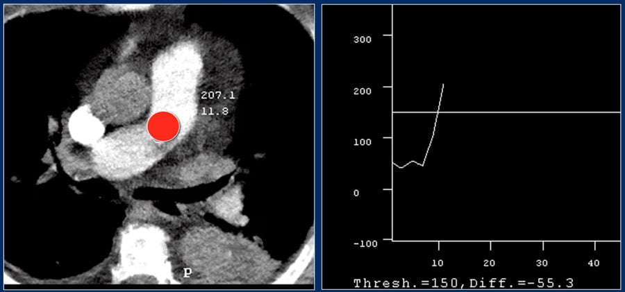 A ROI is placed in the pulmonary trunk.
