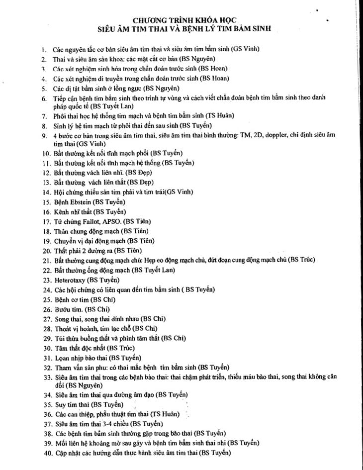 • Đối tượng chiêu sinh: Bác sĩ đã thực hiện siêu âm tim hoặc siêu âm sản khoa trên 1 năm hiện đang công tác tại các bệnh viện tỉnh/thành phố, quận/huyện, phòng khám đa khoa.