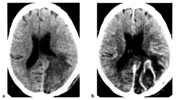 – Bắt chất cản quang dạng hồi não chứng tỏ nhồi máu hoặc viêm.