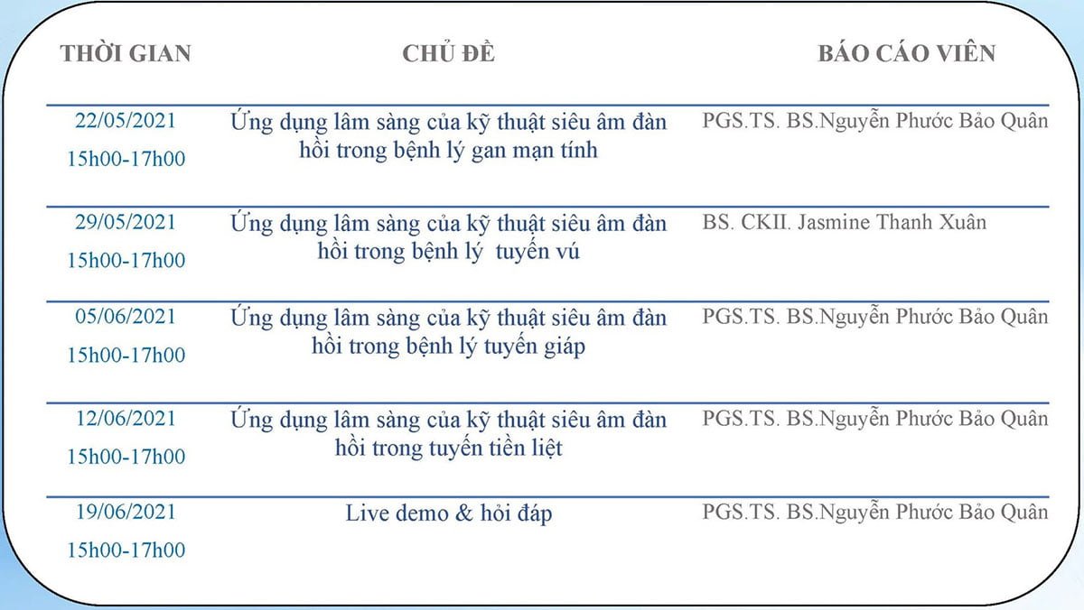 Và để hiểu rõ hơn về tính ứng dụng thì trong kỳ tiếp theo này của chuỗi livestream ỨNG DỤNG LÂM SÀNG CỦA SIÊU ÂM ĐÀN HỒI chúng ta sẽ cùng nhau bàn luận với chủ đề : “Ứng dụng lâm sàng của kỹ thuật siêu âm đàn hồi trong bệnh lý tuyến giáp” với sự chia sẻ của PGS. TS. BS. Nguyễn Phước Bảo Quân (Chủ tịch Chi hội Siêu âm Việt Nam – Giám đốc TTYK Medic Huế)